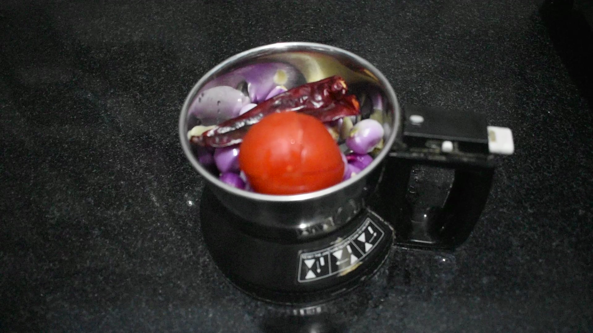 In a mixer grinder add shallots, garlic cloves, chillies, tomato and grind it to a fine paste