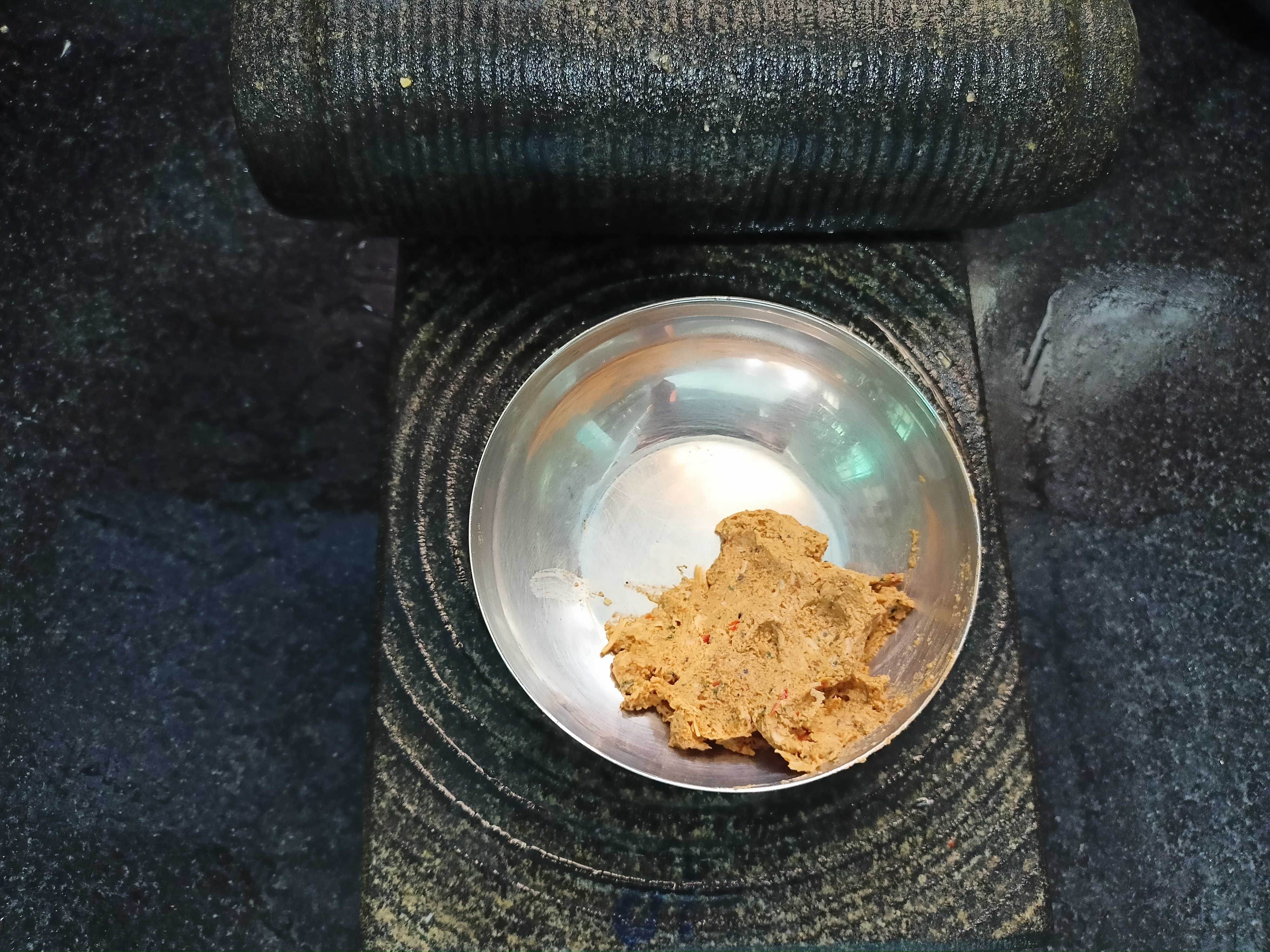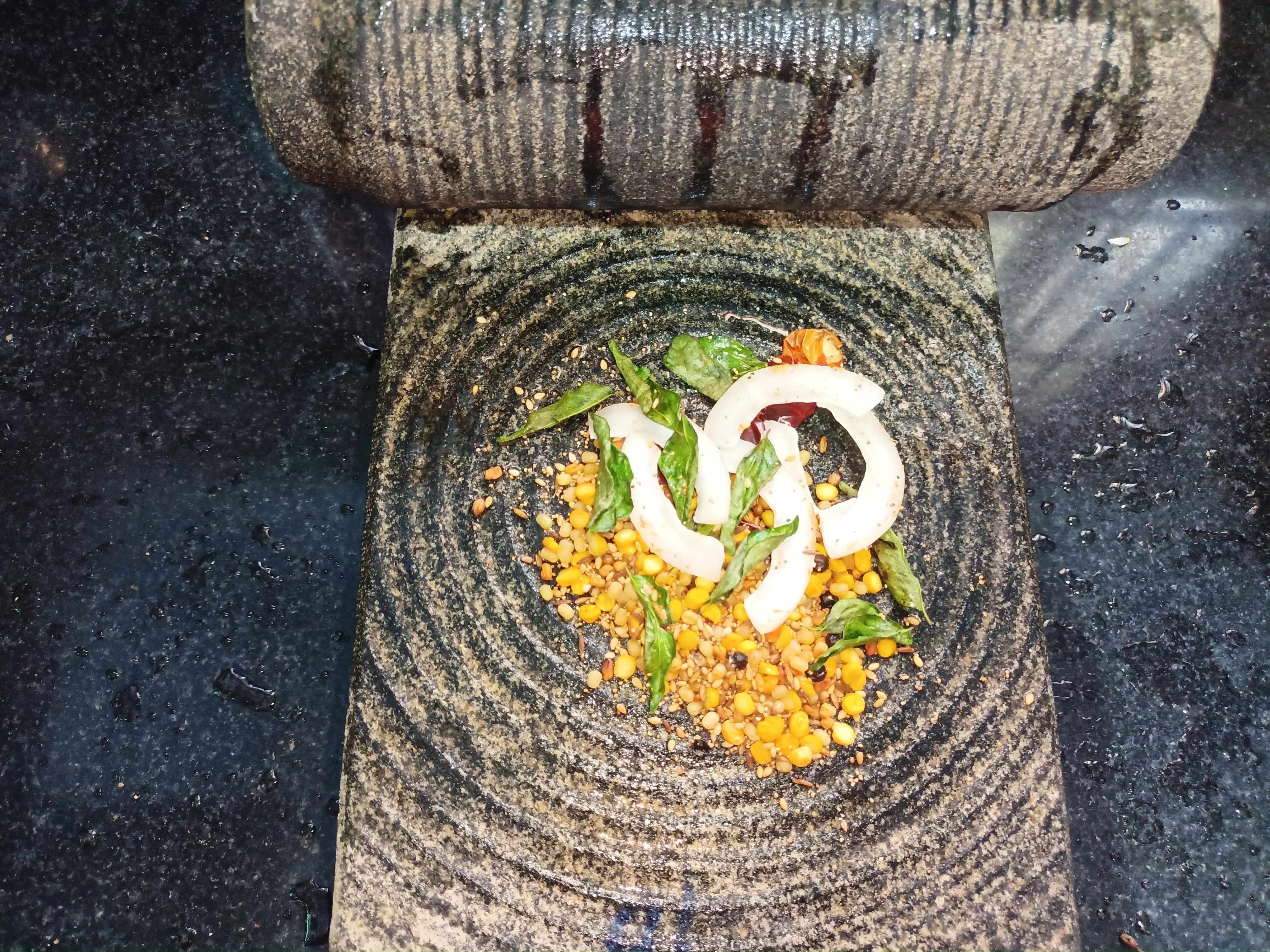 Dry roast all the ingredients in the list for sambar paste using 1 tsp oil for 2 – 3 mins, till you get a nice aroma of spices. Do not burn the spices. Then grind them into smooth paste. I have used ammikal since I can get a thick nice paste using ammikal and I strongly believe taste enriches with tradition . You can also use a blender.