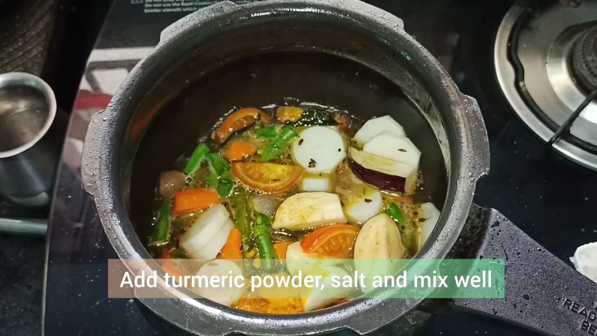 Add turmeric powder and Salt according to your taste. I use rock salt for most of the dishes. Here I have used 1 tsp of rock salt which is sufficient. Close cook the vegetables for 2-3 mins.