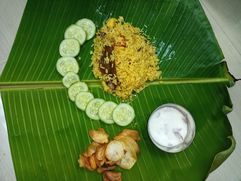 The aromatic paneer biryani goes well with cucumber onion raita.