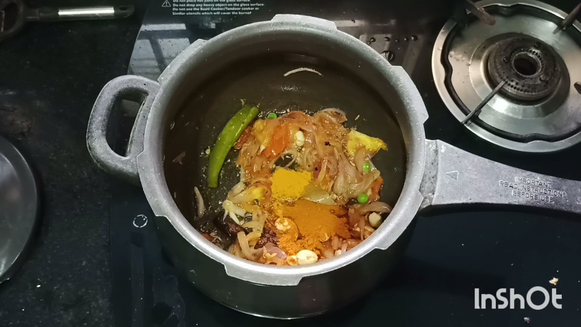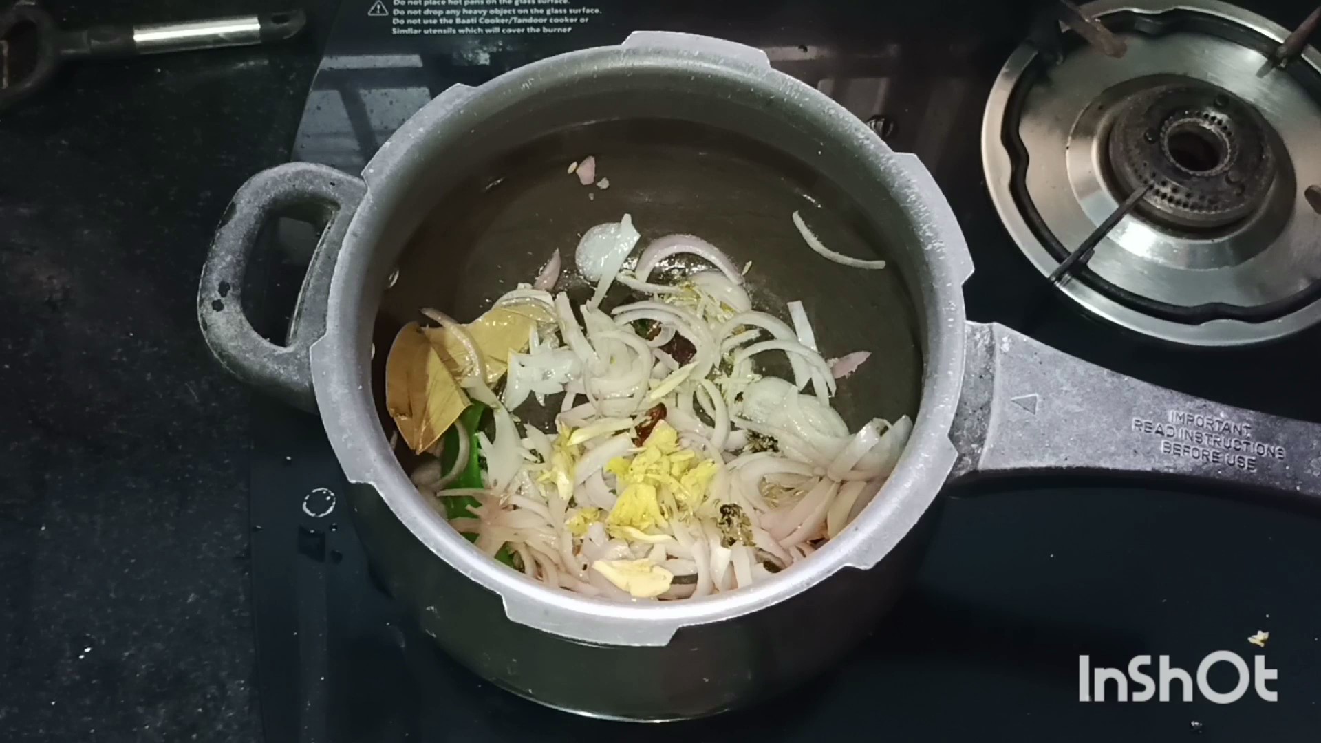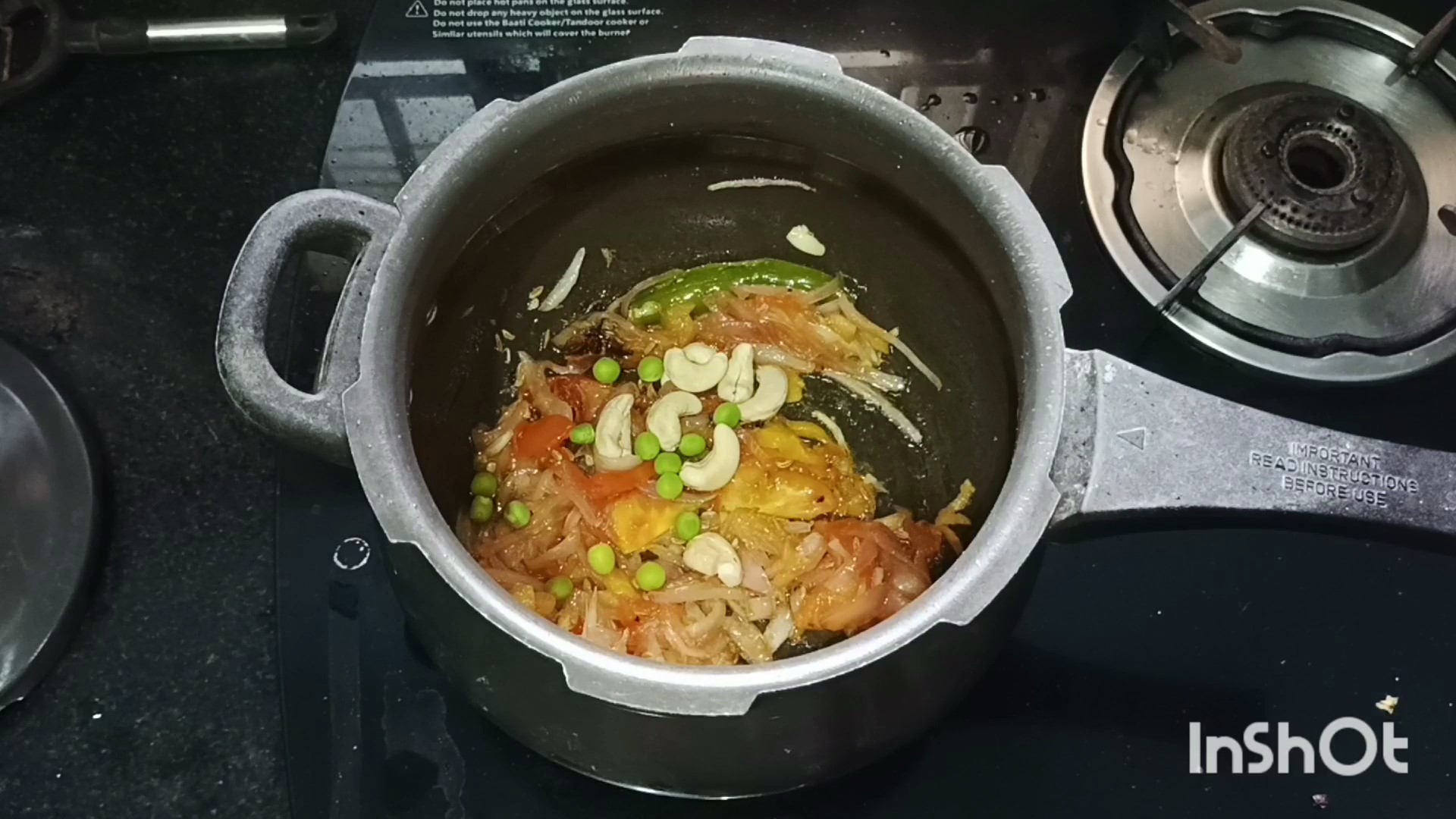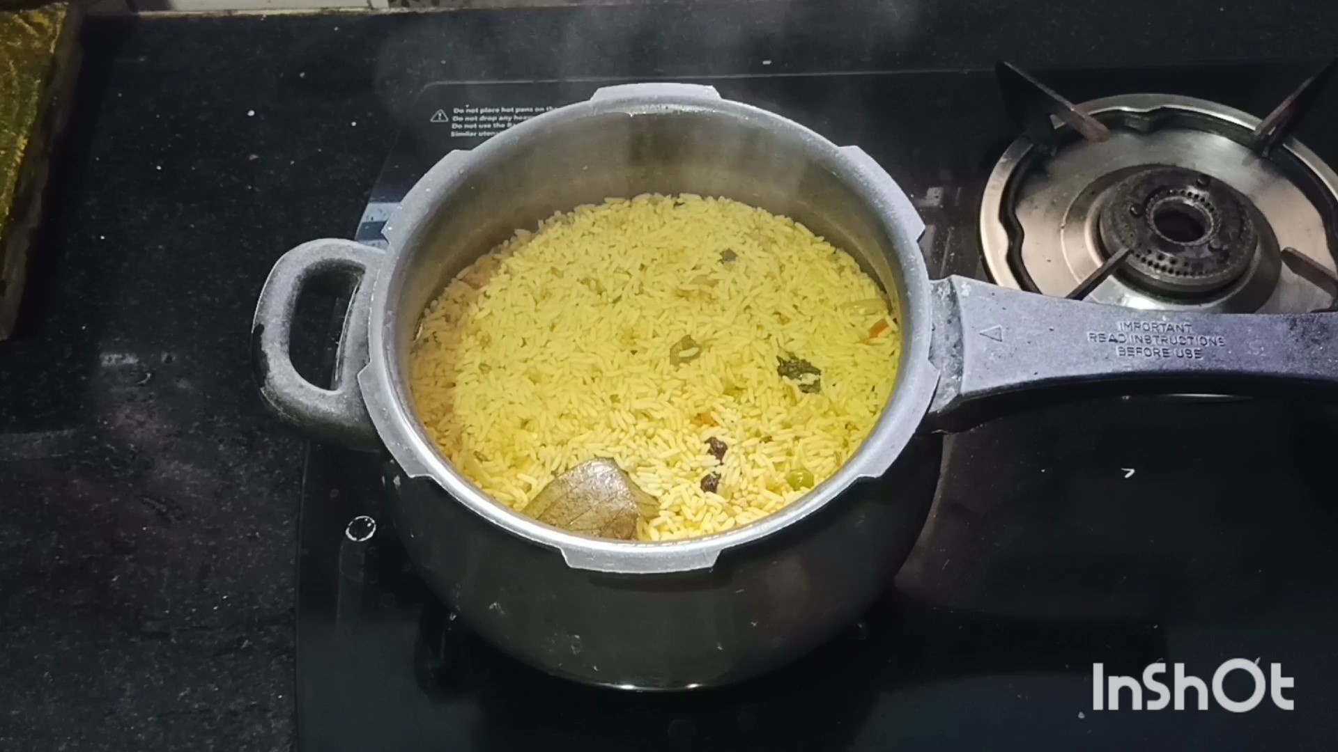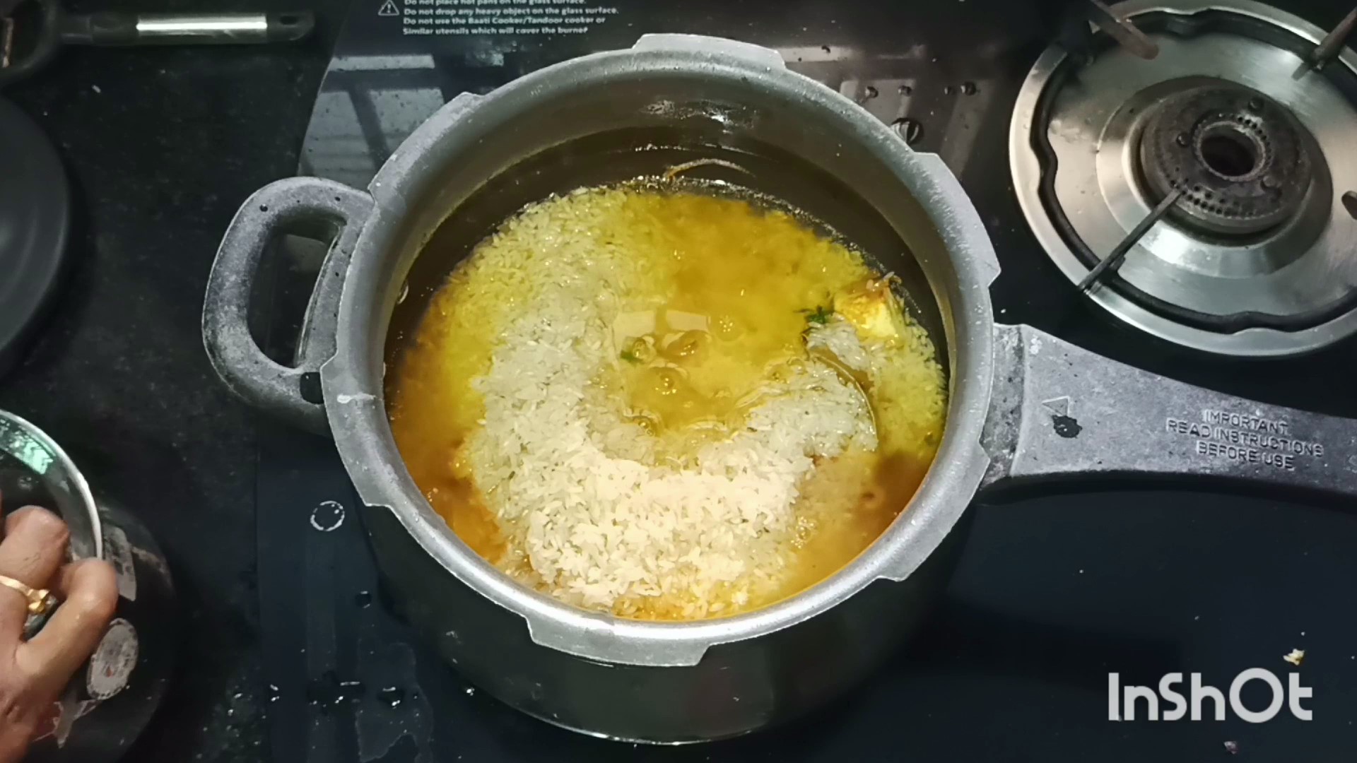 Now add the soaked rice and 2 cups of water. Cook for 4 whistles in medium flame.