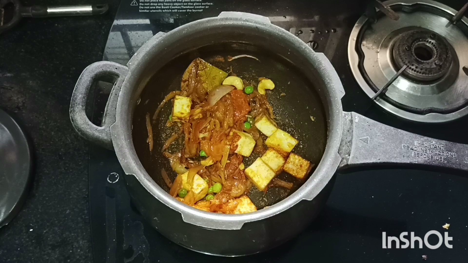 Add tomatoes and close the lid gently. Cook till the tomatoes turn soft and mushy. Then at this stage add cashews and peas if required. Add the chilli powder, coriander powder and turmeric powder and give a quick mix.